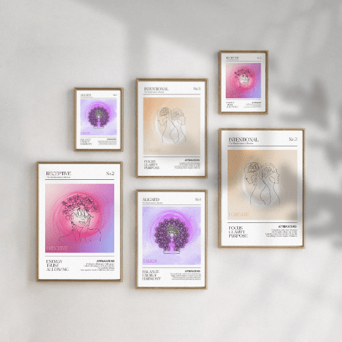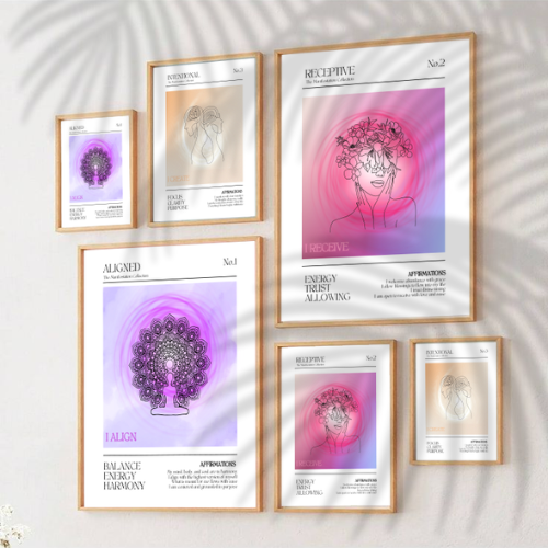 This bundle features minimalist line art, chakra-inspired patterns, and powerful affirmations in soothing pink, purple, and neutral tones. Ideal for bedrooms, meditation spaces, home offices, or anywhere you seek harmony and balance.